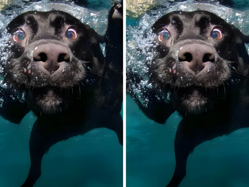 Likely Gear: Olympus Tough TG-6 Find At: Amazon Approx Cost: $500* This black Labrador seems convinced he is a mermaid moments before plunging under. Those wide excited eyes tell the story. An underwater rugged camera like the TG-6 lets owners freeze playful aquatic fantasy in crisp detail.