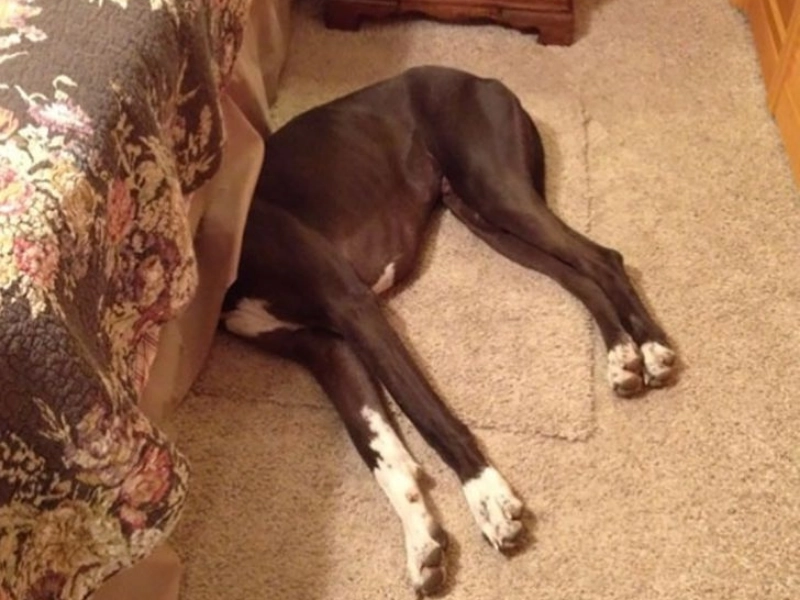 When discovered, some dogs pivot instantly, posing as if they were merely lounging. A stretch or neutral stare sells the act. This playful bluff adds humor and highlights quick instinct. Their casual performance often earns affectionate laughter.