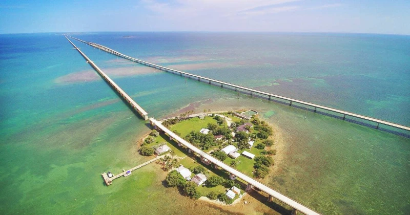 Stretching across Florida Keys blue the Seven Mile Bridge delivers long horizons and shifting light. Calm days feel tranquil yet sudden storms can transform its exposed roadway into a dramatic corridor.