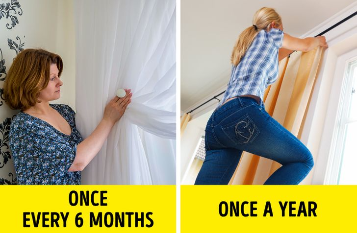 Delicate tulle accumulates fine dust faster and should be washed about every six months. In kitchens or high traffic zones, increase frequency to counter grease and airborne particles.