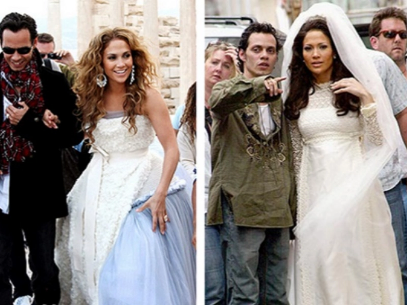 Jennifer Lopez married Marc Anthony in 2004 wearing a finely crafted Vera Wang dress. Its sculpted shape and detailed finish amplified her signature glamour and marked a pinnacle look.