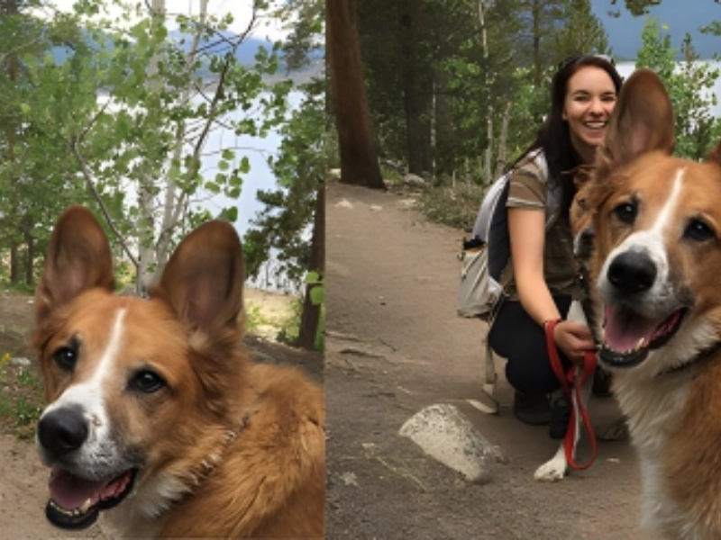She asks for a picture; a friend and second dog leap in. Maybe he is tired of being the other dog or wants equal billing. In the next frame the first dog realizes the spotlight shift. Say cheese and the rival appears.