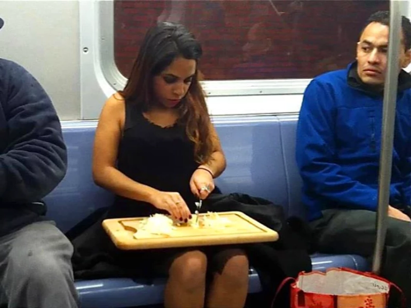 Who says dinner prep waits for home? One resourceful passenger began assembling a meal mid ride. Warm food aromas threaded through the air, hinting at comfort ahead.